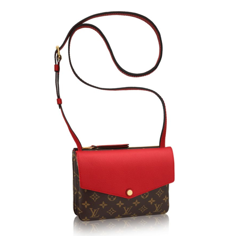 No need to think twice: new Twinset offers on-trend design and flawless functionality in a single lightweight, compact bag. Twinset transitions from day to evening with ease: worn cross-body for a look of casual chic, or suspended elegantly from the shoulder by its long leather strap. Compartments front and back (as well as a central, 鈥渟ecret鈥 pocket) keep belongings organized. Crafted of Monogram canvas and grained calf leather, Twinset is offered in classic black as well as in two playful, high-fashion shades.