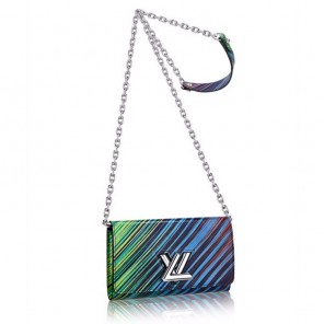 Stylish and versatile, the Twist Chain Wallet can be carried like a clutch or over the shoulder thanks to its eye-catching silver chain. This bold design printed on the patent Epi leather, inspired by Brazil's dense landscapes, brings a touch of color and fun.