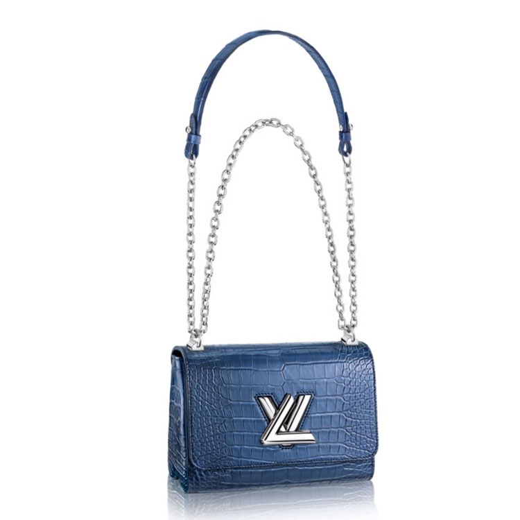 This chic little bag has a secret: it’s roomier than it looks. The cleverly designed “wave” base provides extra space for storing necessities. Rendered with a 3D bombé effect, the metal closure has a modern, architectural feel. To open the bag, a single smooth twist fits the letter “L” into the “V,” with a satisfying click. The convertible chain handle can be worn cross-body or hung gracefully from the shoulder..