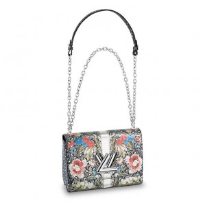 Flower prints abound in the SS 18 collection. For this new iteration of the daytime-to-dark Twist bag, colorful blossoms adorn a backdrop of signature Epi leather. It鈥檚 a fresh and summery piece, finished with a long sliding chain and a jewel-like LV Twist lock.