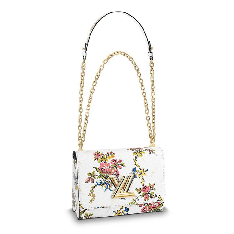 Flower prints abound in the SS 18 collection. For this new iteration of the daytime-to-dark Twist bag, colorful blossoms adorn a backdrop of signature Epi leather. It鈥檚 a fresh and summery piece, finished with a long sliding chain and a jewel-like LV Twist lock.
