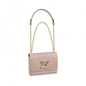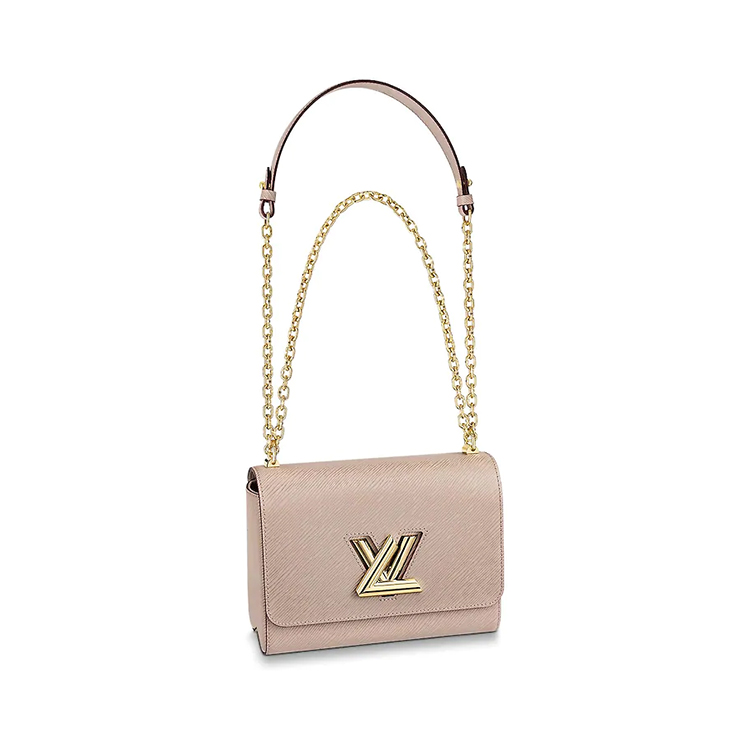 Crafted from the House’s emblematic Epi leather, the Twist MM chain bag features the now-iconic LV Twist lock, a sculptural signature in gleaming golden metal. Unexpectedly roomy thanks to the cleverly designed “wave” base, this beautifully made bag is a fashionable day-to-evening companion. The sliding chain strap can be doubled for shoulder carry or lengthened for cross-body wear. A New Classic of the House, the Twist bag was introduced at the 2015 Cruise show.