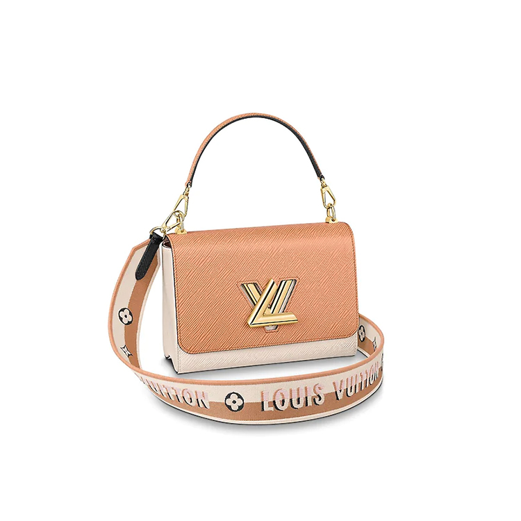 The Twist Strap MM is a laid-back iteration of the New Classic bag. It features both a Epi grained leather top handle and a wide, sporty-chic embroidered satin strap. Designed for a short cross-body carry, the strap is embroidered with “Louis Vuitton” on one side, and Monogram Flowers on the other. A standout style for casual or athleisure looks.