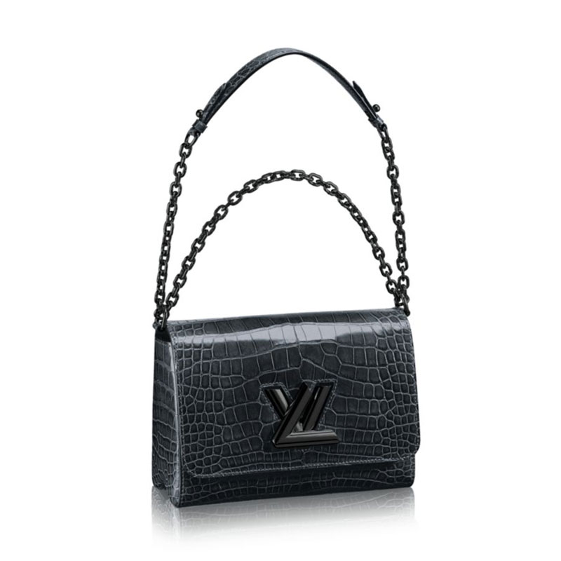 This chic little crocodile bag has a secret: it's roomier than it looks. The cleverly designed wave base provides extra space for storing necessities. Rendered with a 3D bombe effect, the metal closure has a modern, architectural feel. To open the bag, a single smooth twist fits the letter L into the V, with a satisfying click. The convertible chain handle can be worn cross-body or hung gracefully from the shoulder.