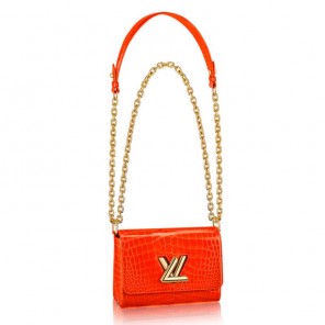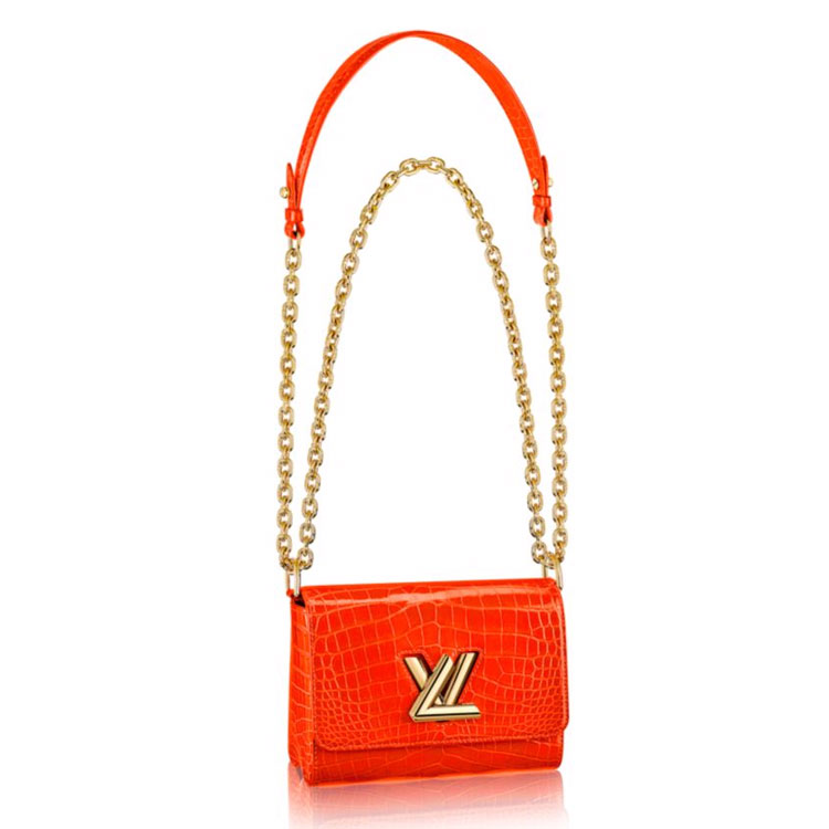 This chic little bag has a secret: it's roomier than it looks. The cleverly designed wave base provides extra space for storing necessities. Rendered with a 3D effect, the metal closure has a modern, architectural feel. To open the bag, a single smooth twist fits the letter L into the V, with a satisfying click. The convertible chain handle can be worn cross-body or hung gracefully from the shoulder.