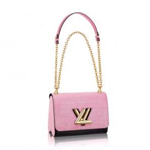 The Twist was first presented in Cruise 2015 and quickly became a New Classic. Fashioned in pink Epi Jean leather, a unique printing and embossing technique that gives leather the visual effect of denim fabric, and paired with smooth black leather, this Twist PM brings a touch of fashionable femininity to any outfit.