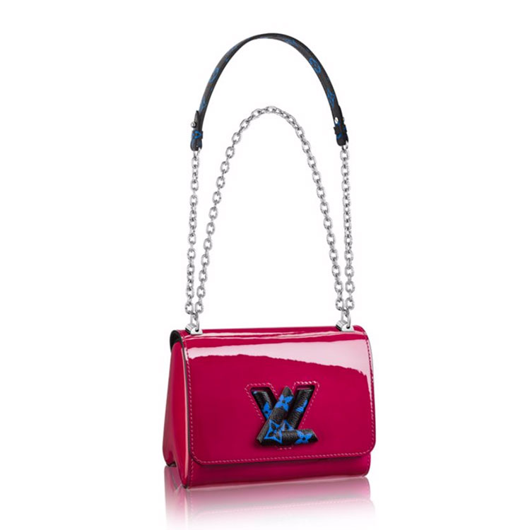 This season, the Twist has been reinterpreted in elegant smooth patent calfskin mixed with graphic & hypnotic Monogram colors lock, for a fashion-forward take on this leather. Perfect for a day-to-evening use, this Twist PM is a bold & cool addition to any silhouette.