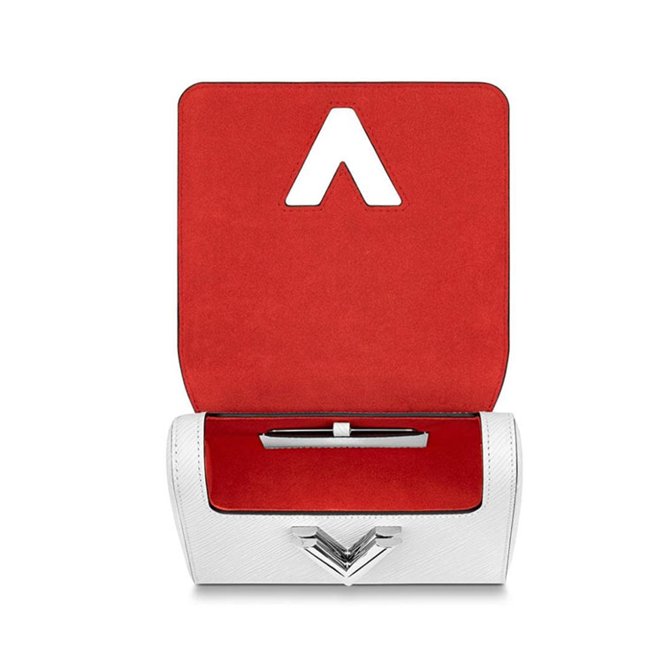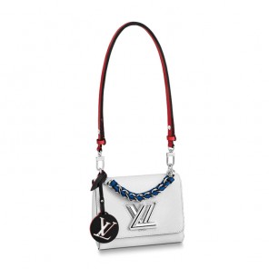 Crafted, playful details give this Twist PM bag a fresh look for Winter 18. Fashioned from Epi leather and signed with the namesake transformable lock, this Twist features a short chain handle braided with contrasting leather. A bold LV charm adds an extra touch of fun to this on-trend model. Both the charm and the leather shoulder strap are removable.