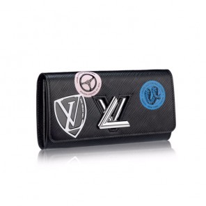 The classic hotel stickers that adorn the grained Epi leather of this Twist wallet have been reimagined by Creative Director Nicolas Ghesquiere, adding his own playful touch. Combining style with practicality, it is accessorized with the emblematic Twist turn-lock, which features an L that transforms into a V with a twist of the fingers.
