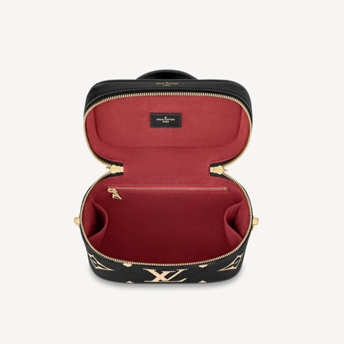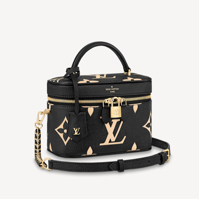 Inspired by the Monogram Nice Vanity, the Vanity PM handbag in Monogram Empreinte leather is a fashionably small bag with a distinctive shape. It is made from grained leather, embossed with the Giant Monogram motif. Its tassel zip pulls, ladylike top handle, and removable strap make it versatile and strikingly stylish.