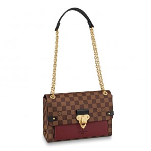 The Vavin chain bag is made from Damier Ebene canvas, elegantly balanced with soft calf leather. The golden-finish lock is inspired by those found on classic Louis Vuitton trunks. Light and body-friendly, the Vavin PM is suspended from a sliding chain handle fitted with twin leather shoulder pads, for a comfortable carry from day into evening.