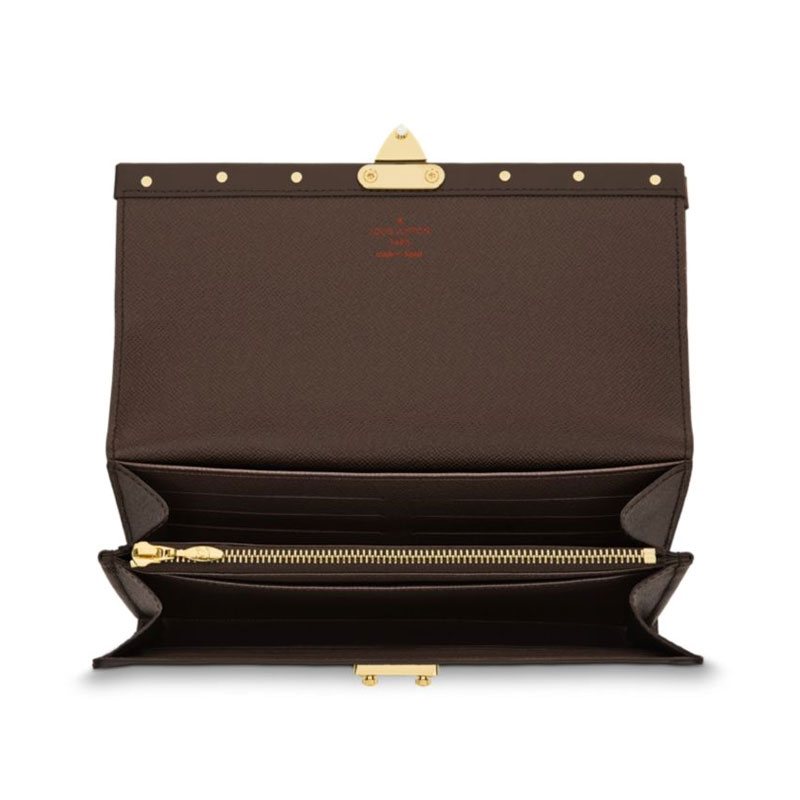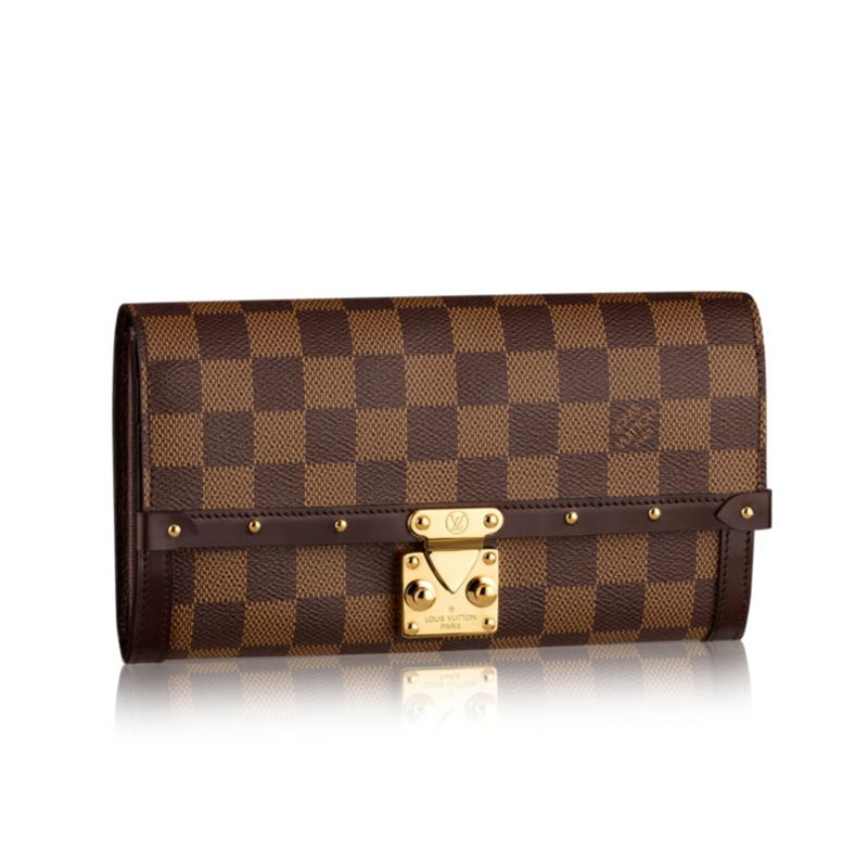 With its historic S-lock and decorative studs, the fashionable Venice Wallet in Damier Ebene canvas pays homage to our heritage as luxury trunk makers. Thanks to its spacious and functional interior, it can also be used as an elegant clutch.