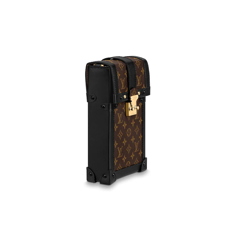 The Pochette Trunk Verticale reinterprets the iconic Essential Trunk small purse in a practical vertical format. Crafted from Monogram canvas and black calf leather, it replicates key details of historic Louis Vuitton trunks, including reinforced corners, an S-lock clasp and a Malletage pattern on the inside pocket. It features a removable, adjustable shoulder strap.
