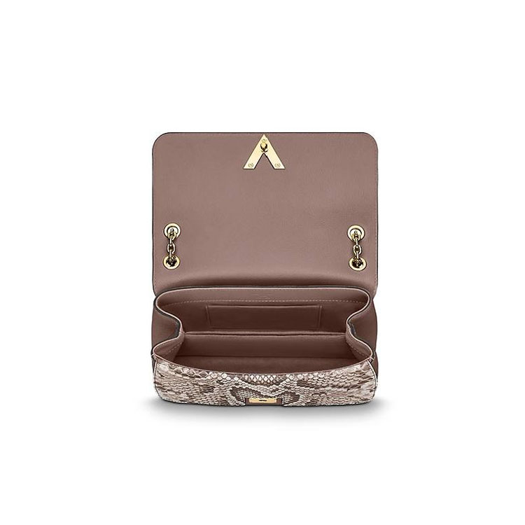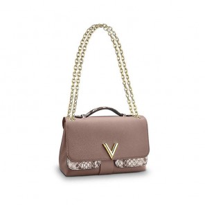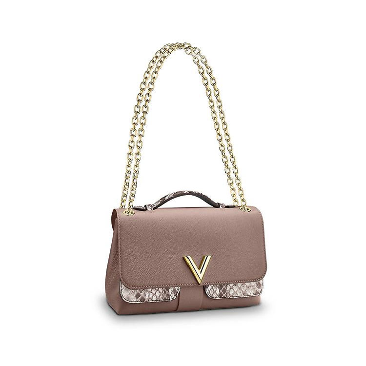 With its pure lines and sophisticated details, the Very Chain Bag in supple Cuir Plume and Cuir Ecume leathers is a must-have bag. The delicate chain and crafted V signature provide glamour while the flap and lock closure keep your essentials safe inside. Very body friendly, thanks to its soft feel and very light weight. The silky and very transparent leather played in contrasted with a small grained version lets discretly appear the Monogram pattern.