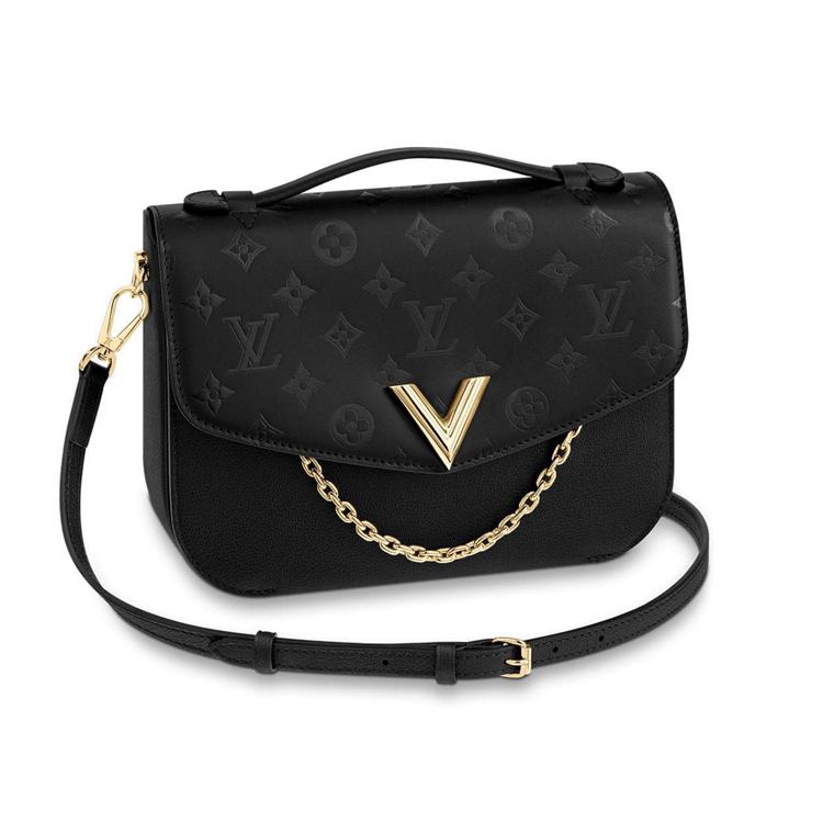 This Very Messenger handbag is fashioned from a combination of smooth leather and grained leather with a discreet Monogram pattern. Signed with a gold-color chain and Vuitton "V,"it is body friendly, lightweight, and easily holds all daily essentials. The adjustable strap allows for a hands-free cross-body carry or long shoulder wear.
