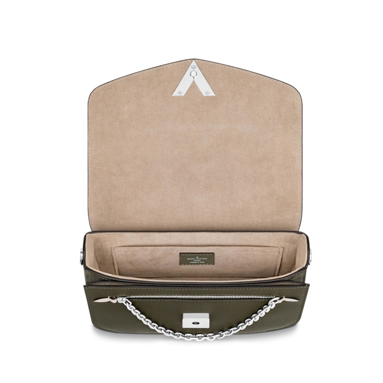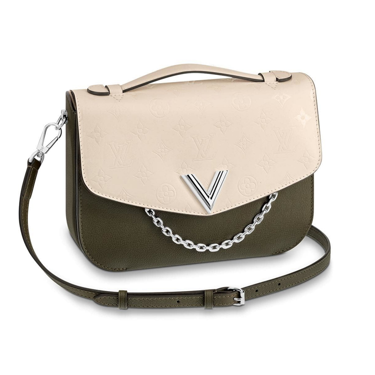 This Very Messenger handbag is fashioned from a combination of smooth leather and grained leather with a discreet Monogram pattern. Signed with a gold-color chain and Vuitton "V,"it is body friendly, lightweight, and easily holds all daily essentials. The adjustable strap allows for a hands-free cross-body carry or long shoulder wear.