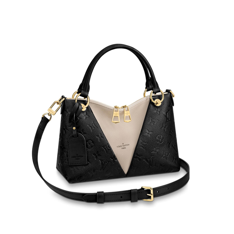 For Spring 2019 the V Tote is offered in embossed Monogram Empreinte cowhide with a smooth leather panel and trim. The charming BB model lends itself to several carry styles, with its twin Toron top handles and long, removable strap. Gold-color hardware adds a bright note and the luggage-style name tag nods to the House鈥檚 travel heritage.