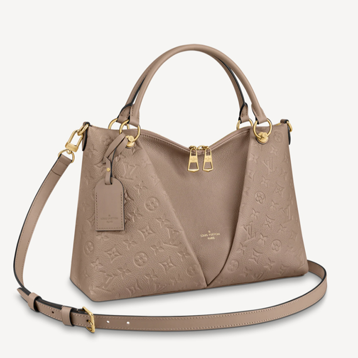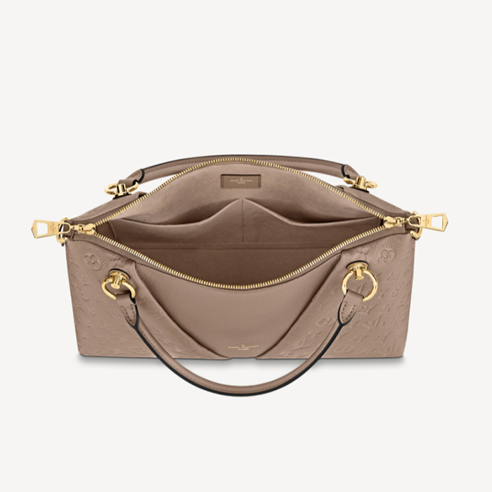 Crafted from embossed Monogram Empreinte cowhide leather paired with a smooth cowhide leather panel and trim, the V Tote checks all the boxes. Sophisticated, roomy, casual yet chic, it can be carried in several ways, by its Toron handles or removable strap. Accented with gleaming gold-tone hardware, the MM model features a hidden zipped front pocket for small essentials.
