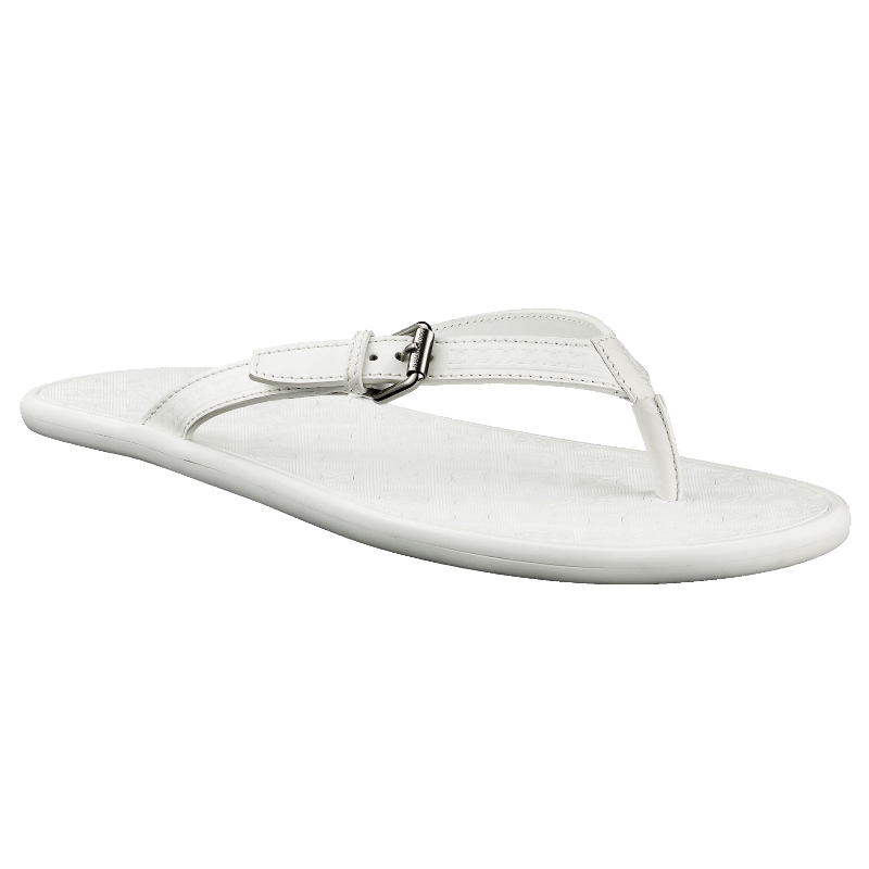 Ideal for relaxed summer days, this comfortable flat thong features leather straps embossed with a series of LV initials and a supple rubber sole embossed with the Monogram pattern.