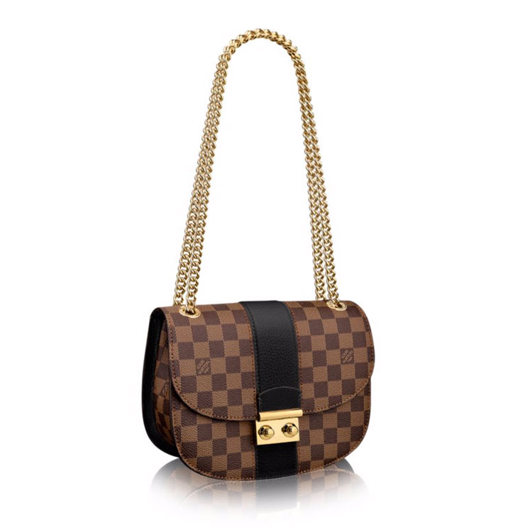 A great day-to-evening bag, the Wight mixes emblematic Damier Eb猫ne canvas with a generous stripe of colorful Cuir Taurillon leather for easy elegance. The thin golden chain and signed eyelets and delicate lock further embolden this study in casual chic.