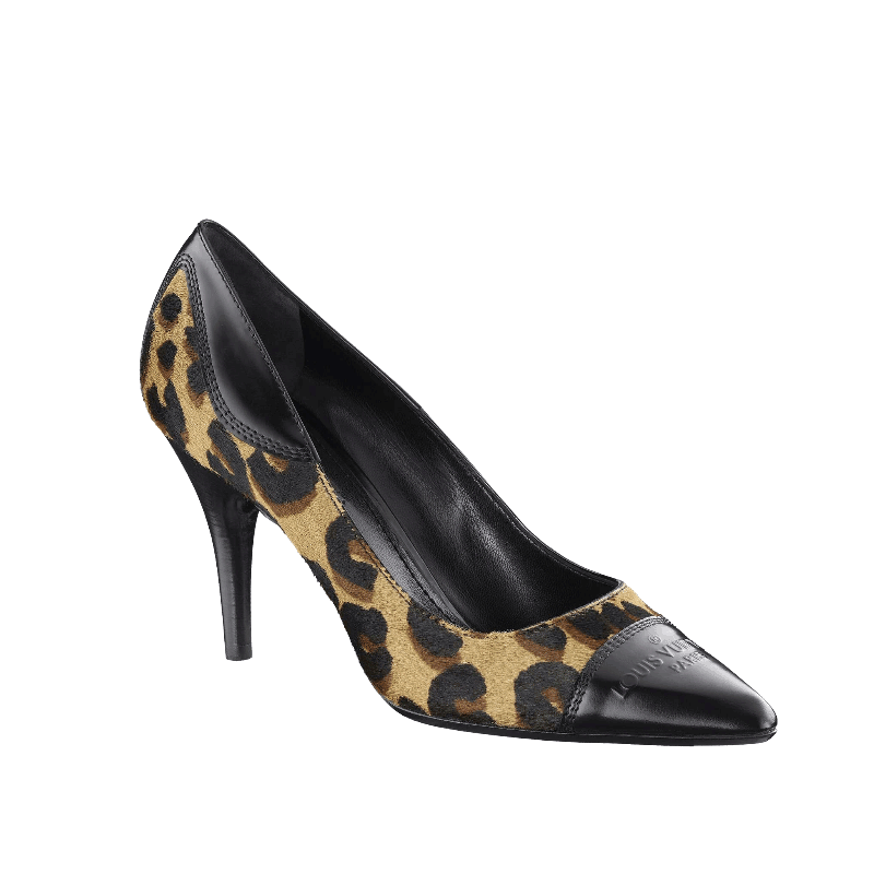 In pony-styled calfskin with glazed leather trim, these sexy high-heeled pumps revisit the iconic leopard print designed by artist Stephen Sprouse for Louis Vuitton.