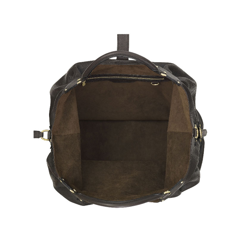 - Hook closure secured by a flap and clasp with the Louis Vuitton signature