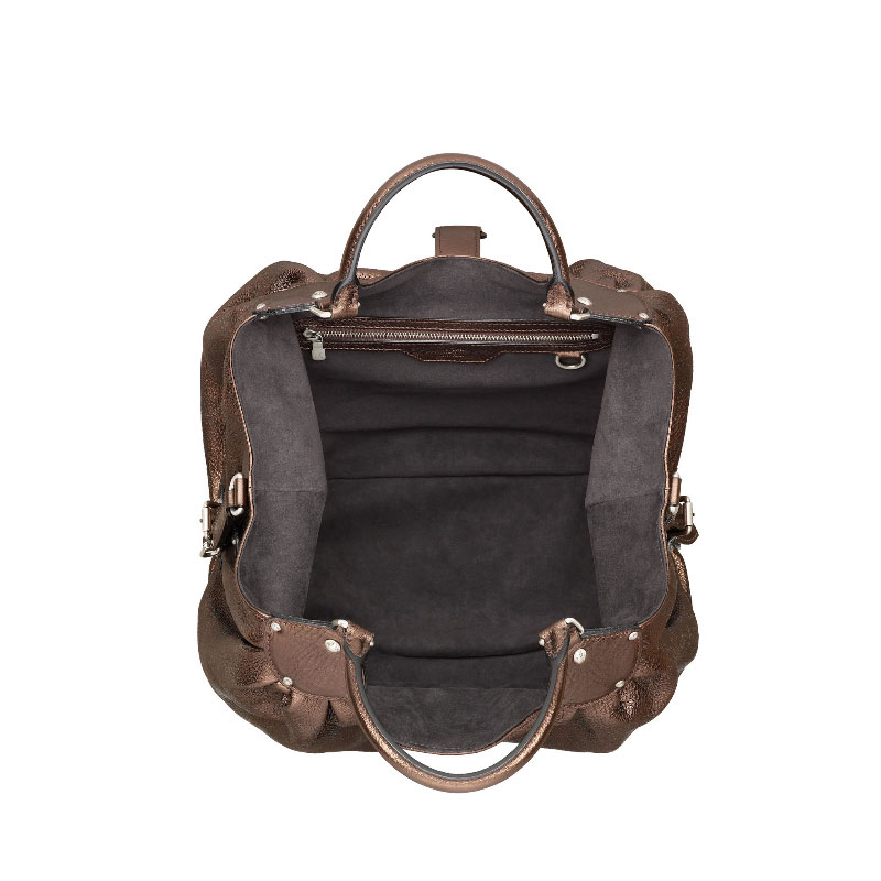 - Hook closure secured by a flap and clasp with the Louis Vuitton signature