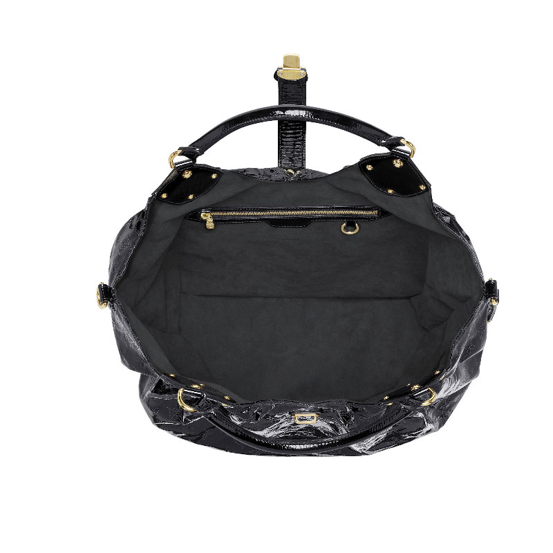 The Surya range is named after the Hindu Sun God because of its radiance. This XL bag, in supple, discreetly perforated Monogram patent leather, has sophisticated pleat work for body friendliness. The Surya leather is qualitative and lends itself to play with feminine details as well as an array of glossy and bright colors.