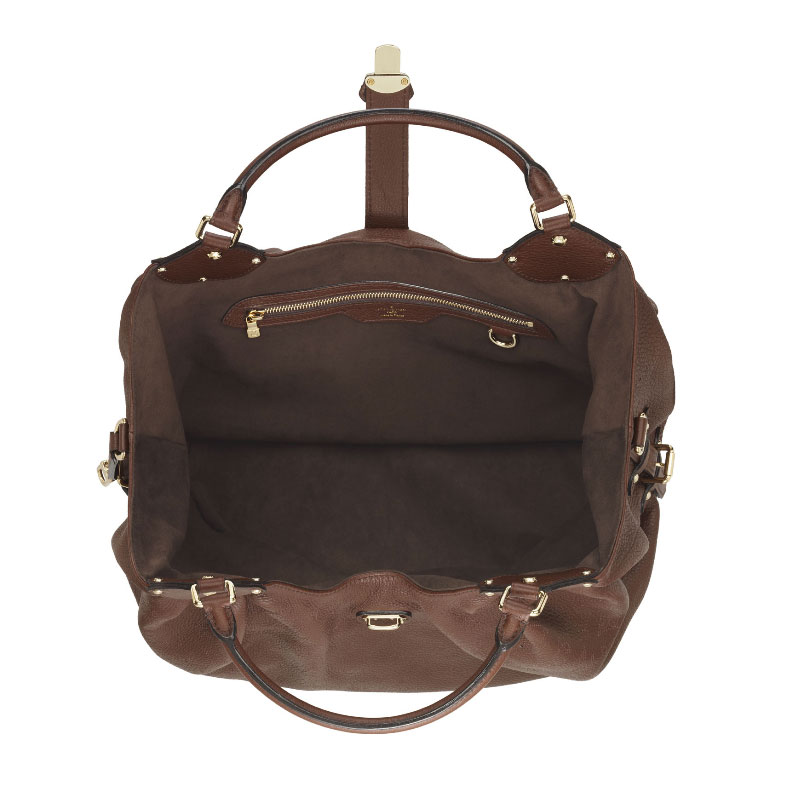 - Hook closure secured by a flap and clasp with the Louis Vuitton signature