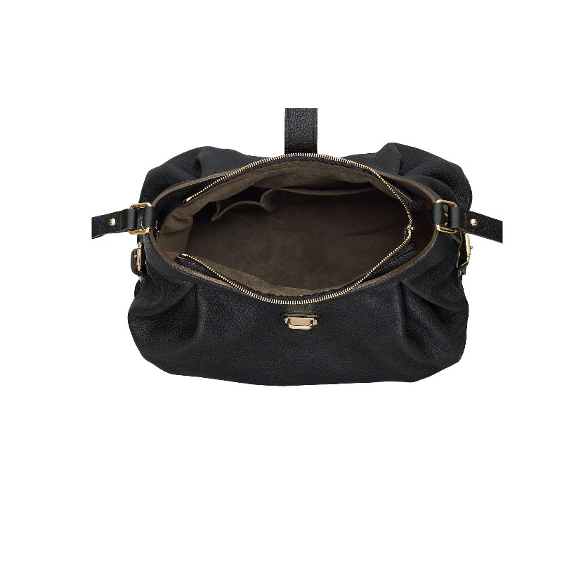 - Rounded contours enhanced by pleats, perforated Monogram details