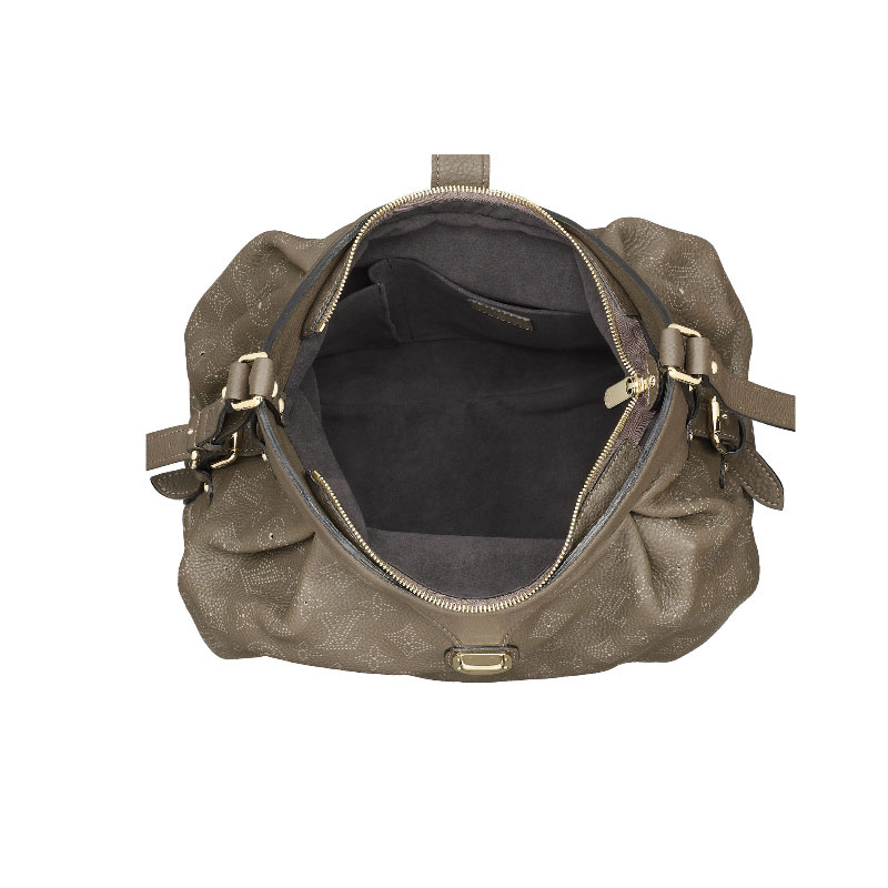 - Rounded contours enhanced by pleats, perforated Monogram details