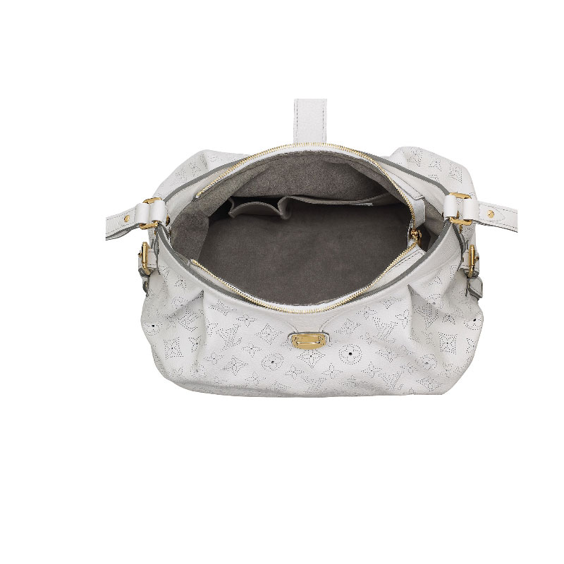 Feminine and very trendy, the XS comes in soft, luxurious Mahina leather with perforated Monogram details. It can be carried on the shoulder or across the body.