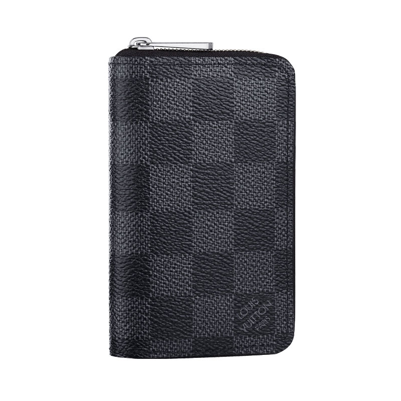 The Zippy is a compact coin purse in masculine Damier Graphite canvas. It features a wide zippered closure, making it ideal for change, credit cards and business cards.