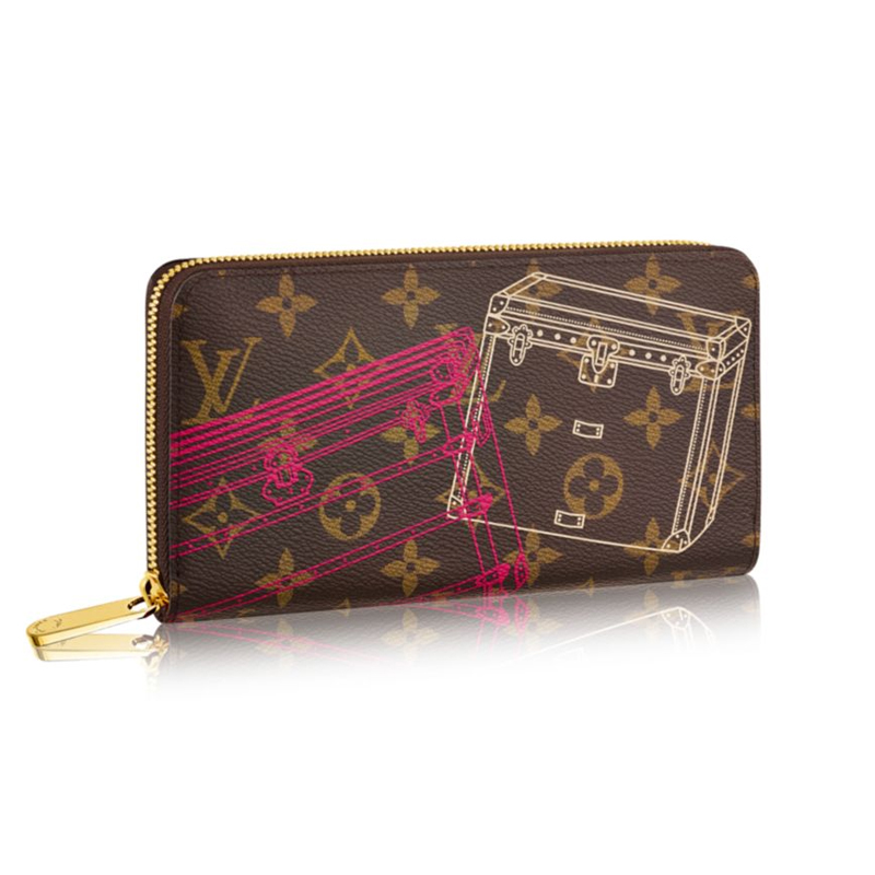 The drawings of historic Louis Vuitton trunks make this wallet in Monogram canvas one-of-a-kind. Its cleverly designed interior with room for credit cards, bills and coins makes it remarkably practical.