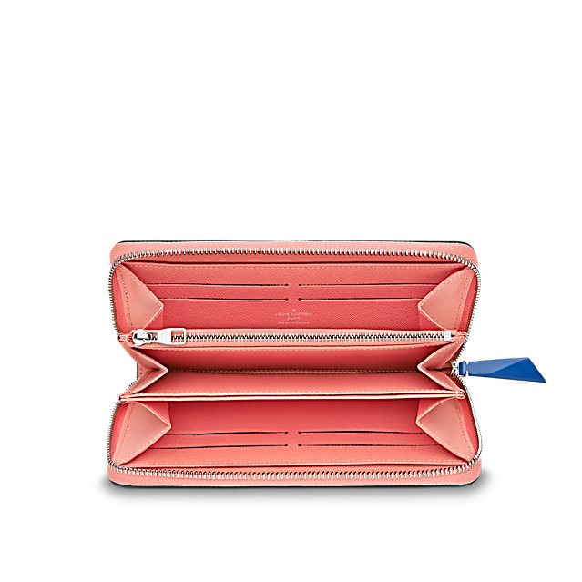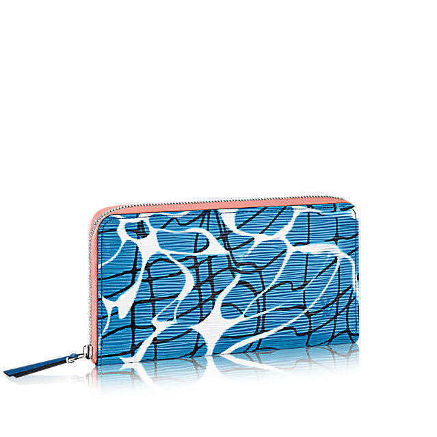Capturing the spirit of summer, the striking Aqua pattern, seen at Louis Vuitton's Cruise 2016 show, was inspired by light playing on the surface of a swimming pool. The iconic Zippy wallet in printed Epi leather has a compact design and generous interior, making it a true essential.