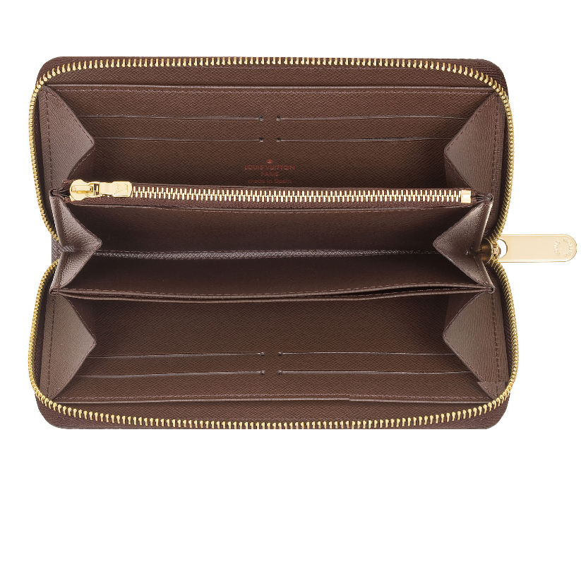 This practical wallet holds bills, credit cards, small change as well as identity papers. It comes in?Damier canvas?and features a zipper closure.