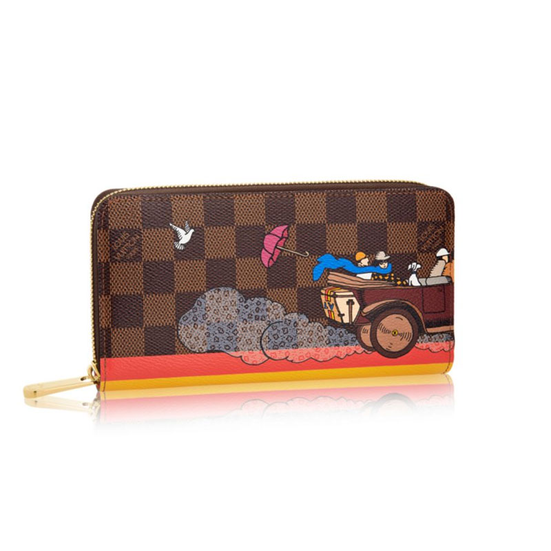 Ideal gift, this witty and colorful limited edition, inspired by an historical advertisement from 1921, pays tribute to Louis Vuitton's travel heritage. The iconic Zippy wallet in Damier Ebene canvas brings together an original design and multifunctionality. Very practical, its generous interior features plenty of room for money, cards and coins and a handy all-round zip.