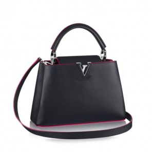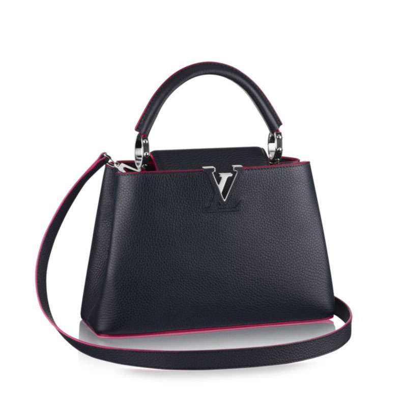 The fashionable mini size of Capucines BB lends an intense pop of contrasting colors to wardrobe styles from classic to daring. Finished with shiny palladium accents, the Capucines BB comes with a removable long shoulder strap for casual shoulder or cross-body wear.