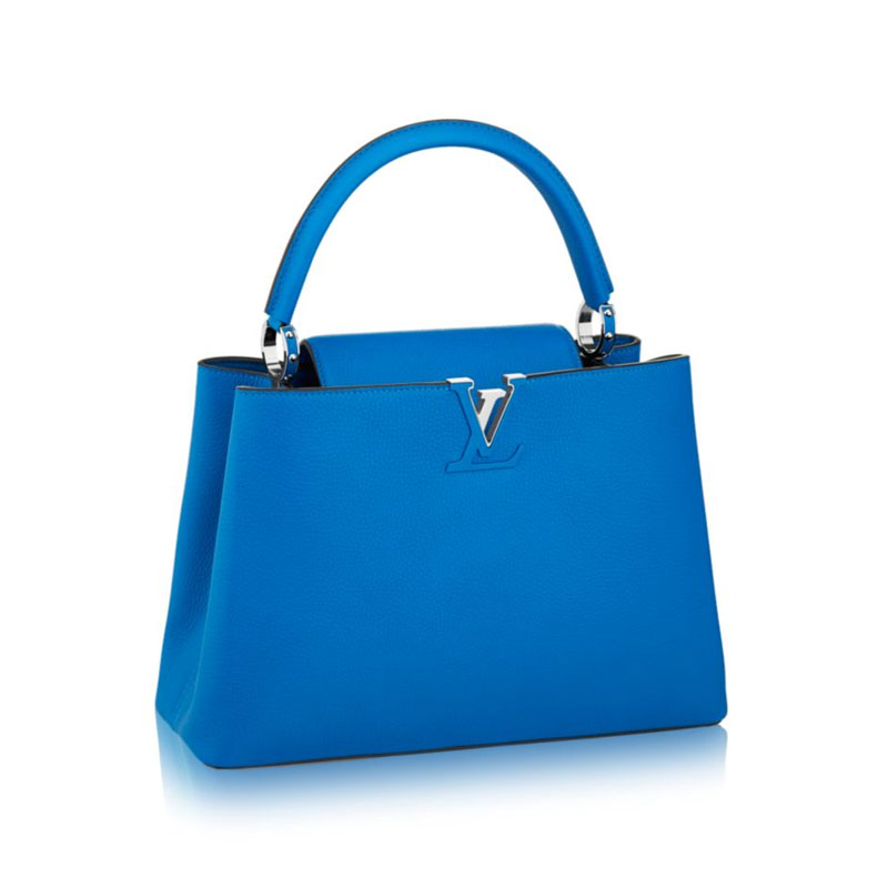 Taking its name from the rue des Capucines in Paris, where Louis Vuitton opened his first store in 1854, the timelessly elegant Capucines bag is a testament to fine leather craftsmanship. In full-grain Taurillon leather, it combines refined details, including a semi-rigid handle secured by jewel-like rings, with a spacious, functional shape offering two inside compartments. Its distinctive flap can be worn in two ways: outside to reveal the outline of a Monogram flower, or inside to show the LV initials.