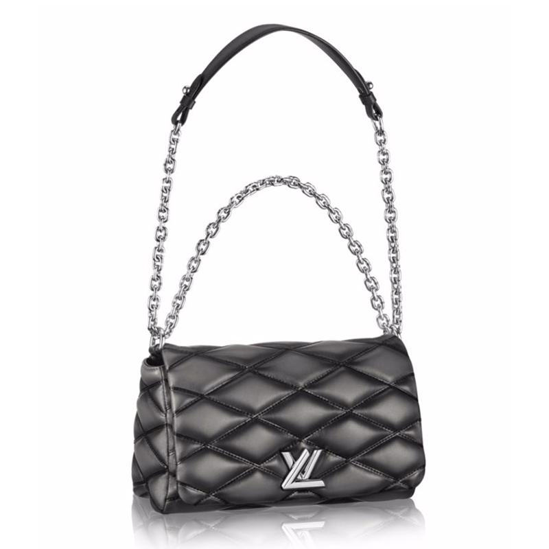 Inspired by the crisscross lining of classic Vuitton trunks, the Malletage pattern is rendered here in soft embossed lambskin with distinctive ribbon embroidery. New, too, is the LV lock in a smaller version, a gleaming jewel in Palladium brass. The S/S 15 signature sliding chain adds a sophisticated touch to this versatile, body-friendly bag.