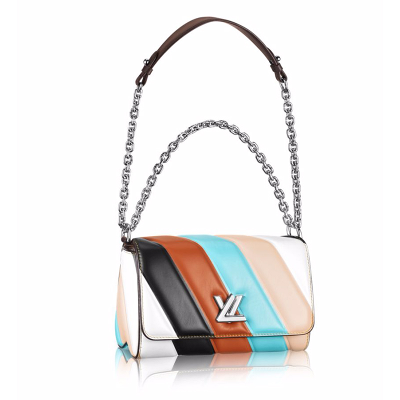 The stripes are bold, the colors versatile. A key shape for the season, the GO-14 complements virtually every look that Nicolas Ghesquiere sent down the S/S 15 runway. In soft, touchable lambskin, the bag features the signature extra-long sliding chain strap and a new, smaller twist lock in silvery Palladium brass.