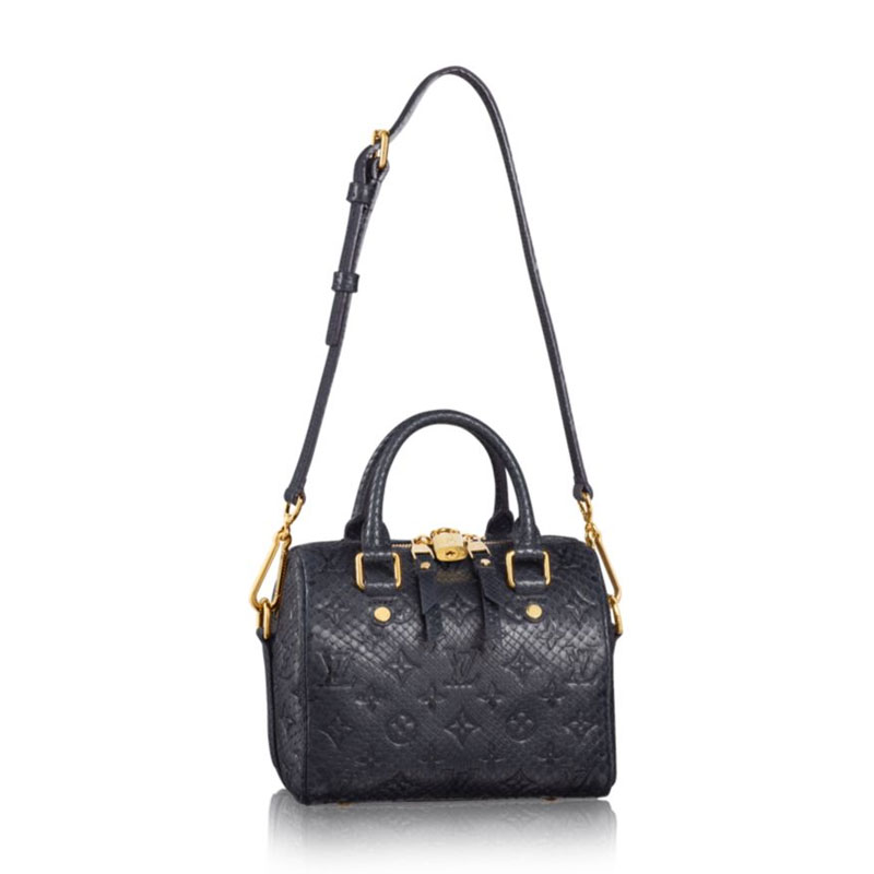 This miniature version of Louis Vuitton's iconic Speedy bag, first created in the 1930s, is given a luxurious twist in precious python skin delicately embossed with the Monogram pattern. Practical features, including a removable, adjustable shoulder strap, and a palette of rich colors make this a must-have accessory for all occasions.