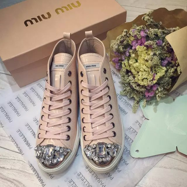2016 Miu Miu Patent leather casual shoes with Diamonds
