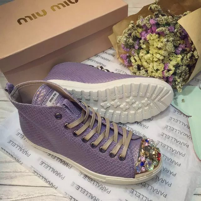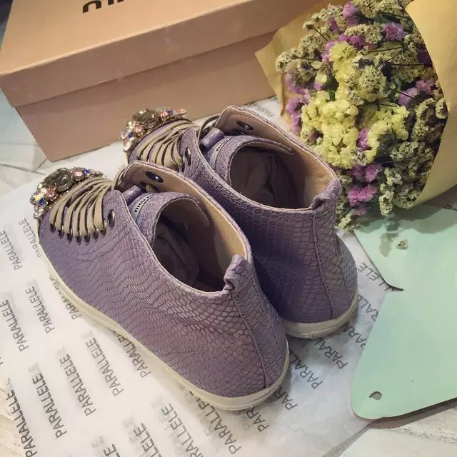 2016 Miu Miu Snake stripes casual shoes with Diamonds