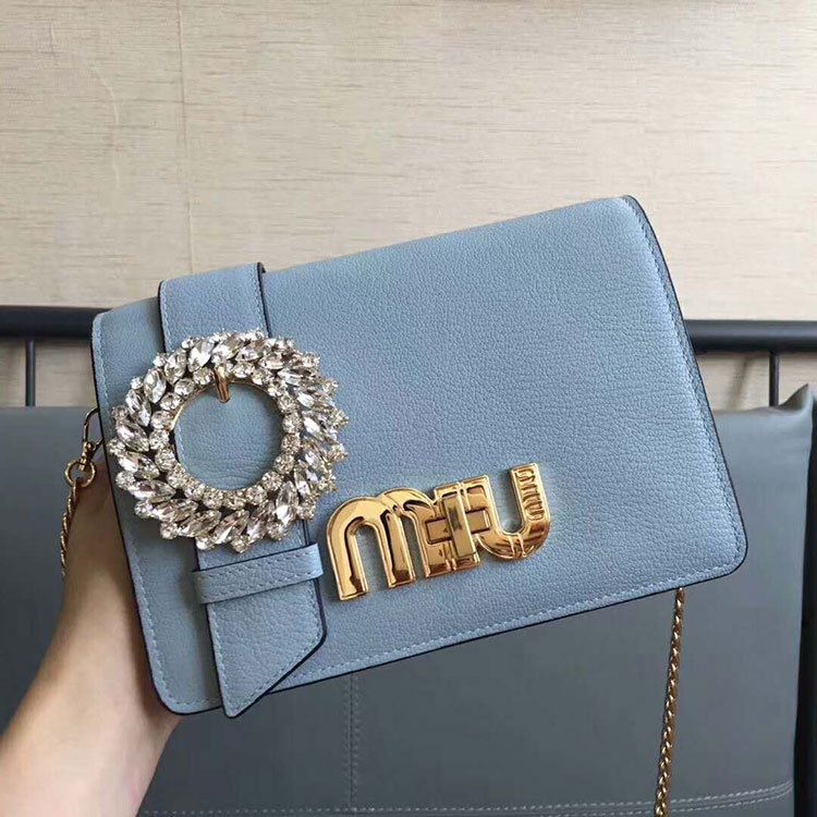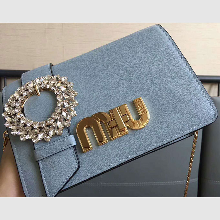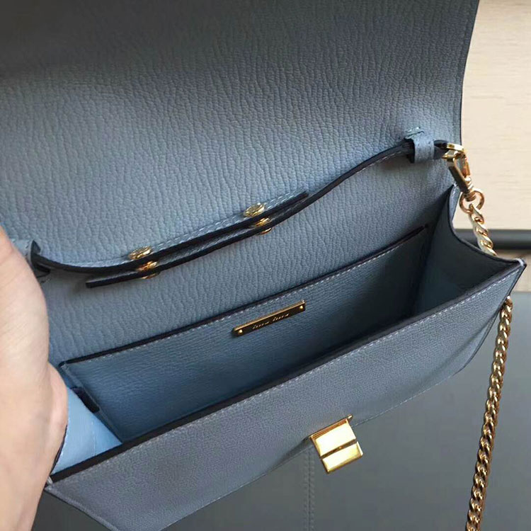 - Flap closure with Miu Miu Logo turn-lock clasp