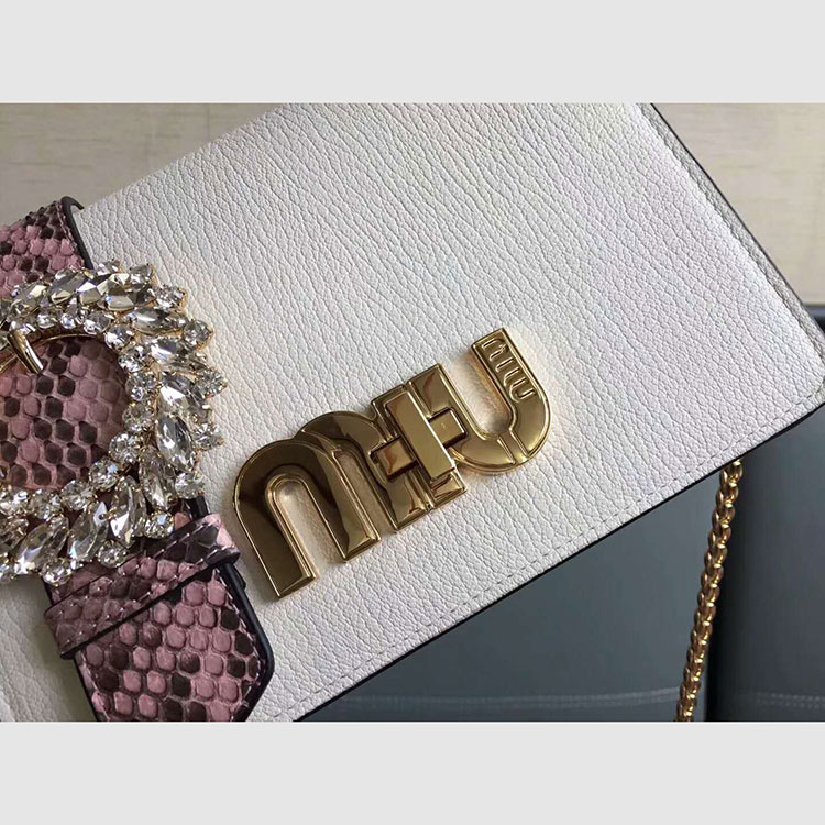 - Flap closure with Miu Miu Logo turn-lock clasp