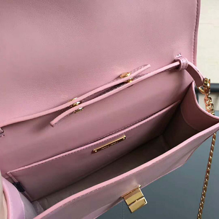- Flap closure with Miu Miu Logo turn-lock clasp