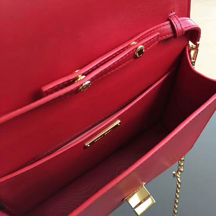 - Flap closure with Miu Miu Logo turn-lock clasp