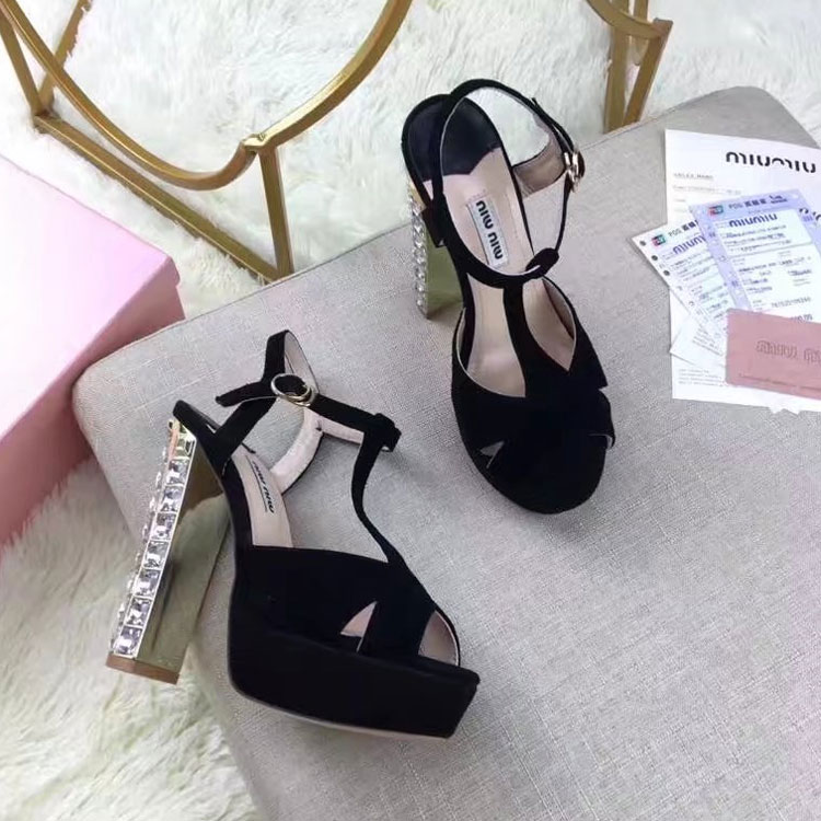 2017 Miu Miu women Sandals in Nubuck Leather Heel Height 13.5cm