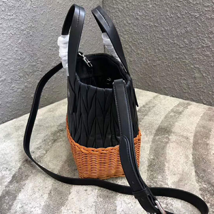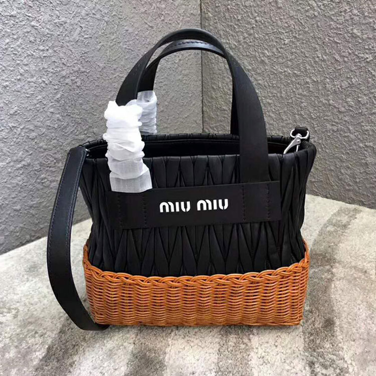 2018 MiuMiu NAPPA LEATHER AND WICKER BAG